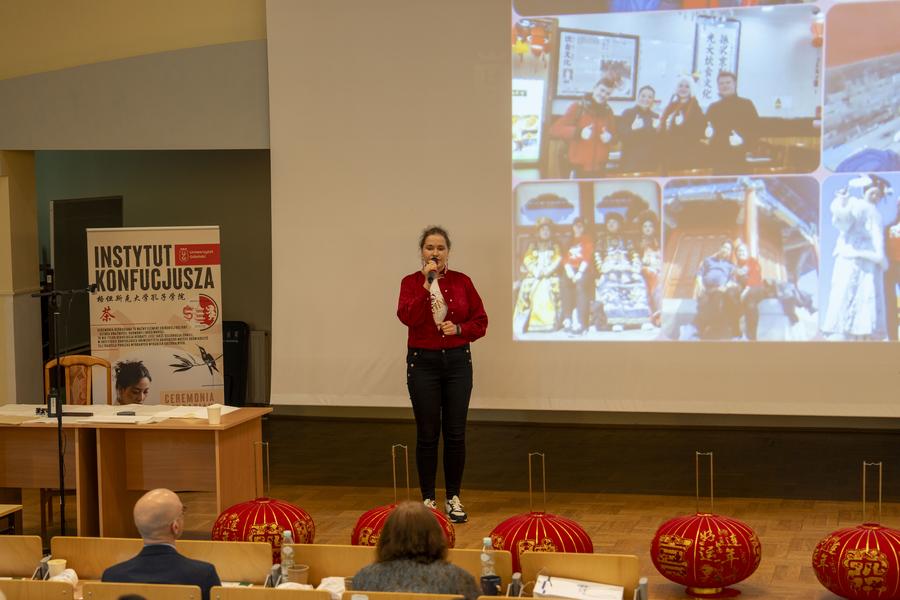 Maria Lejczak, a primary school student from Gdynia, a port city on the Baltic coast of Poland, won last year's competition for young learners. At this year's opening ceremony, she took the stage in traditional Chinese costume and performed a traditional local Huangmei opera song.
