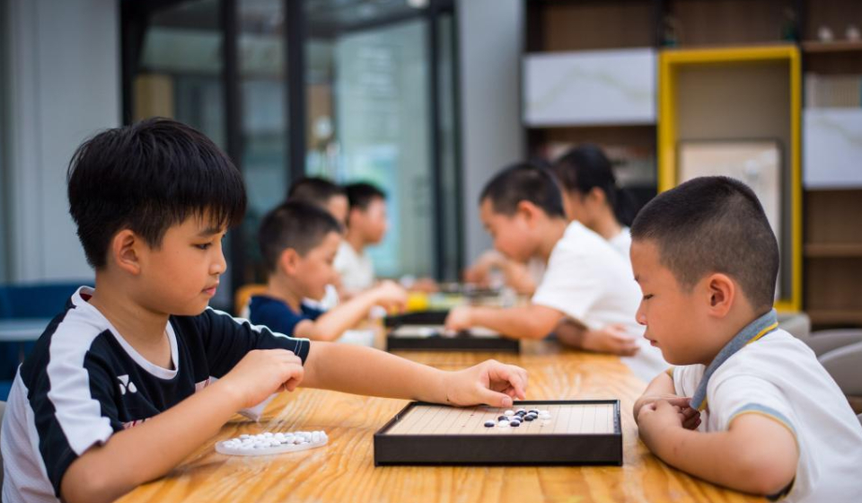 Children play board games at a community service center in Shangcheng District of Hangzhou City, east China's Zhejiang Province, July 21, 2025. Community service centers in Hangzhou provide childcare assistance and various activities to enrich children's summer vacation. (Xinhua/Jiang Han)