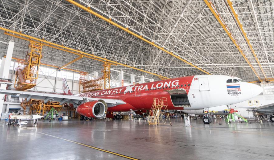 An inbound aircraft is under maintenance at a one-stop aircraft maintenance base in Hainan Free Trade Port in Haikou, south China's Hainan Province, Feb. 17, 2025. (Xinhua/Zhang Liyun)