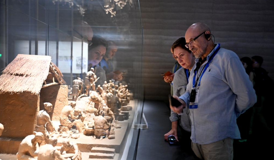 Participants of the Shanghai Cooperation Organization (SCO) Media and Think Tank Summit visit Yangshao Culture Museum in Mianchi County of Sanmenxia, central China's Henan Province, July 23, 2025. The SCO Media and Think Tank Summit is held in Zhengzhou from July 23 to 27. Participants are invited to visit various locations in Henan during the summit. (Xinhua/Hao Yuan)