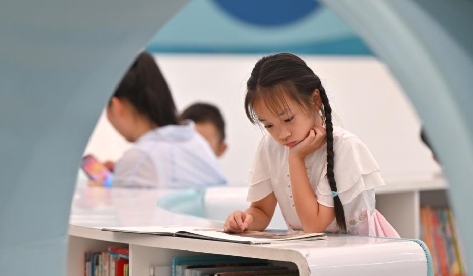 A child reads at a library in Haikou, south China Hainan Province, Aug. 3, 2025. (Xinhua/Guo Cheng)