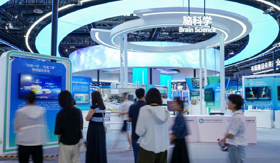 Visitors learn about intelligent brain-computer systems at the Zhongguancun Exhibition Center in Beijing, capital of China, June 20, 2025. (Xinhua/Ju Huanzong)