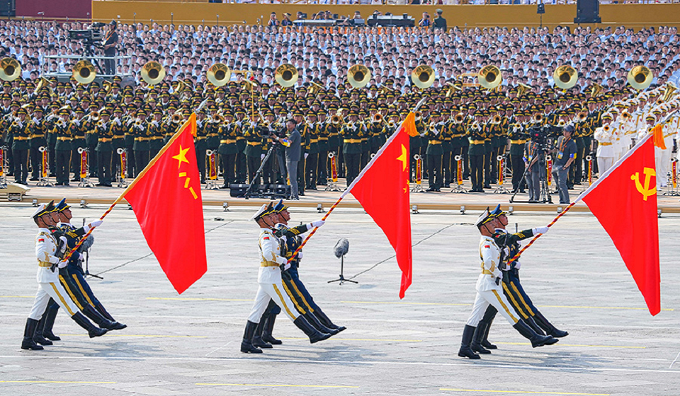 The guard of honor of the Chinese People's Liberation Army (PLA) passes through Tian'anmen Square during a grand gathering to commemorate the 80th anniversary of the victory in the Chinese People's War of Resistance against Japanese Aggression and the World Anti-Fascist War in Beijing, capital of China, Sept. 3, 2025. (Xinhua/Xing Guangli)