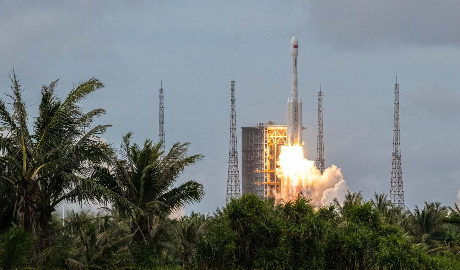 A modified Long March-7 carrier rocket carrying the Yaogan-45 satellite blasts off from the Wenchang Spacecraft Launch Site in south China's Hainan Province, Sept. 9, 2025.