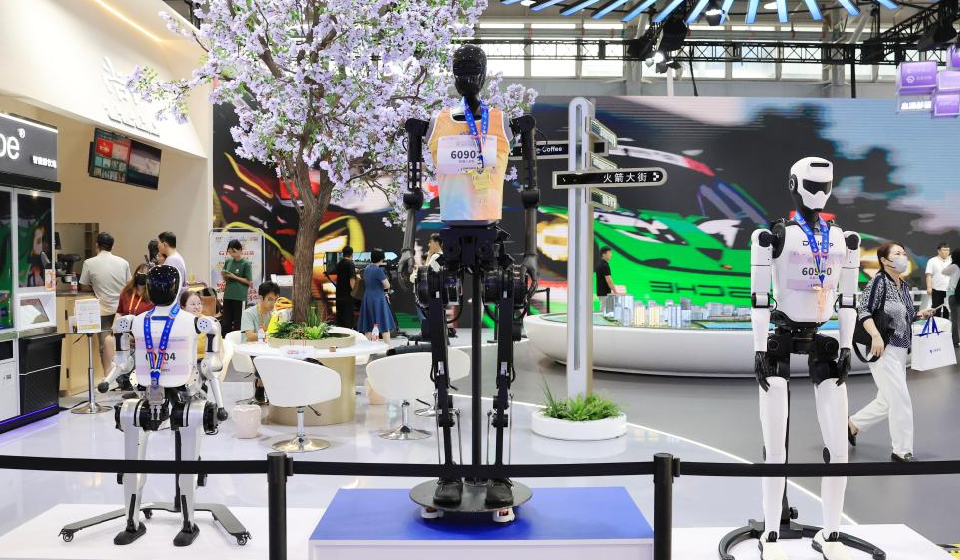 The robots which won awards at a robot marathon are exhibited at the 2025 China International Fair for Trade in Services (CIFTIS) in Beijing, capital of China, Sept. 11, 2025. The 2025 CIFTIS opened in Beijing on Wednesday, themed "Embrace Intelligent Technologies, Empower Trade in Services." (Xinhua/Li Xin)