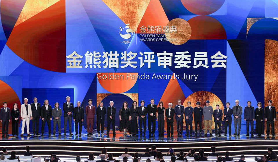The Golden Panda Awards jury poses at the second Golden Panda Awards ceremony in Chengdu, southwest China's Sichuan Province, Sept. 13, 2025.