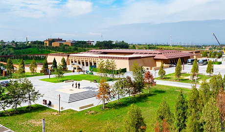 Photo taken on Sept. 12, 2025, shows the Taosi Site Museum in Xiangfen County, Linfen City, north China's Shanxi Province. Under blue skies and white clouds, the museum stands in majestic serenity, harmonizing with surrounding mountains, fields, villages, greenery, and walkways to form an autumn landscape that merges historical depth with ecological vitality. (Li Xianjun/Guangming Picture)
