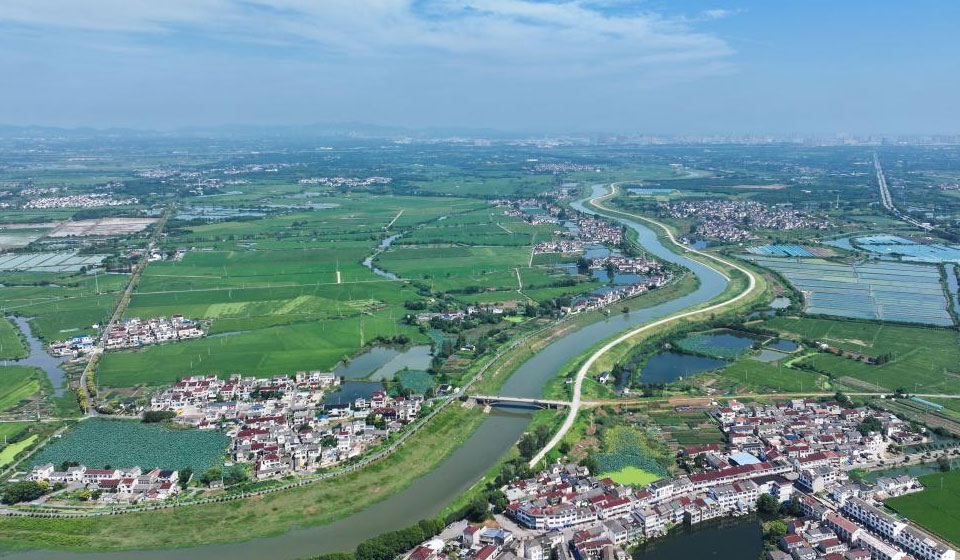 An aerial drone photo taken on Sept. 15, 2025 shows a view of an irrigated area of the Chishan Lake Irrigation System in Jurong City, east China's Jiangsu Province. The 17-century-old Chishan Lake Irrigation System has recently been added to the World Heritage Irrigation Structures (WHIS) list during the 76th International Executive Council Meeting of the International Commission on Irrigation &Drainage (ICID). The system is still nourishing more than 5,100 hectares of arable lands. (Xinhua/Ji Chunpeng)