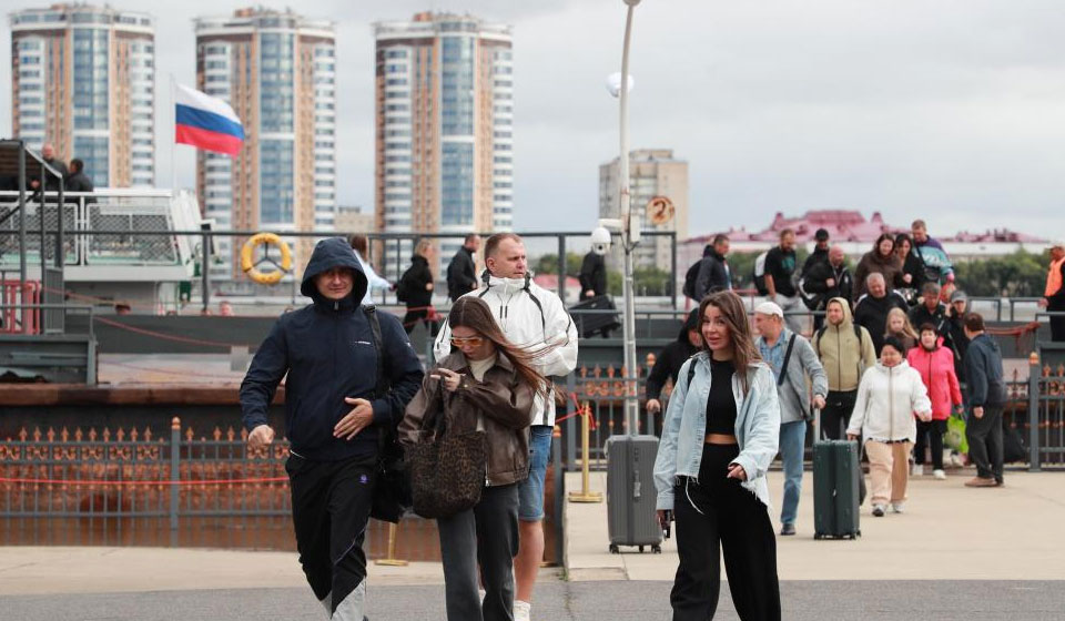 Russian travelers are seen on their way to the border inspection hall at a port in Heihe, northeast China's Heilongjiang Province, Sept. 15, 2025. On Sept. 2, China announced a trial visa-free policy for Russian citizens holding ordinary passports, effective from Sept. 15, 2025, to Sept. 14, 2026.