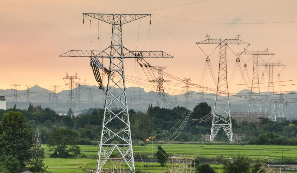The 2,370-kilometer power line starts from Wuwei, Gansu Province and ends in Shaoxing, Zhejiang Province. When in operation, it will facilitate the transmission of clean energy from northwest China and ease the power shortage in east China. (Xinhua/Liu Junxi)