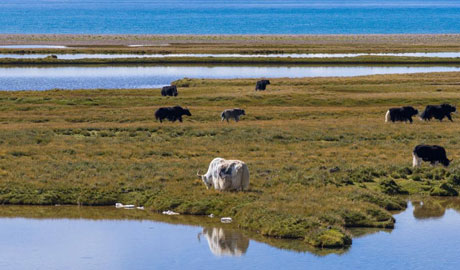 A drone photo taken on Sept. 16, 2025 shows a view of Nam Co, the world's highest saltwater lake, in southwest China's Xizang Autonomous Region. Nam Co, located in the Qinghai-Xizang Plateau, with a lake-surface elevation of 4,718 meters, is the second largest lake in the region. (Xinhua/Jiang Fan)