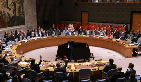 Representatives vote on a draft resolution during a UN Security Council meeting at the UN headquarters in New York, Sept. 18, 2025. The United States on Thursday vetoed a UN Security Council draft resolution that would have demanded Israel immediately lift all restrictions on humanitarian access and delivery in Gaza. (Xinhua/Xie E)