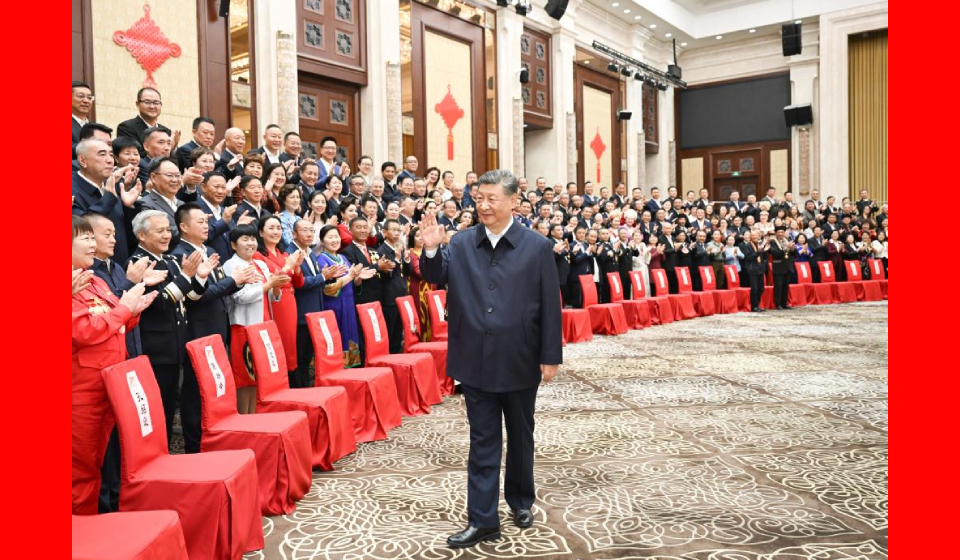 Chinese President Xi Jinping, also general secretary of the Communist Party of China Central Committee and chairman of the Central Military Commission, meets with representatives of cadres who come to work in Xinjiang from other parts of the country in Urumqi, northwest China's Xinjiang Uygur Autonomous Region, Sept. 23, 2025. (Xinhua/Xie Huanchi)