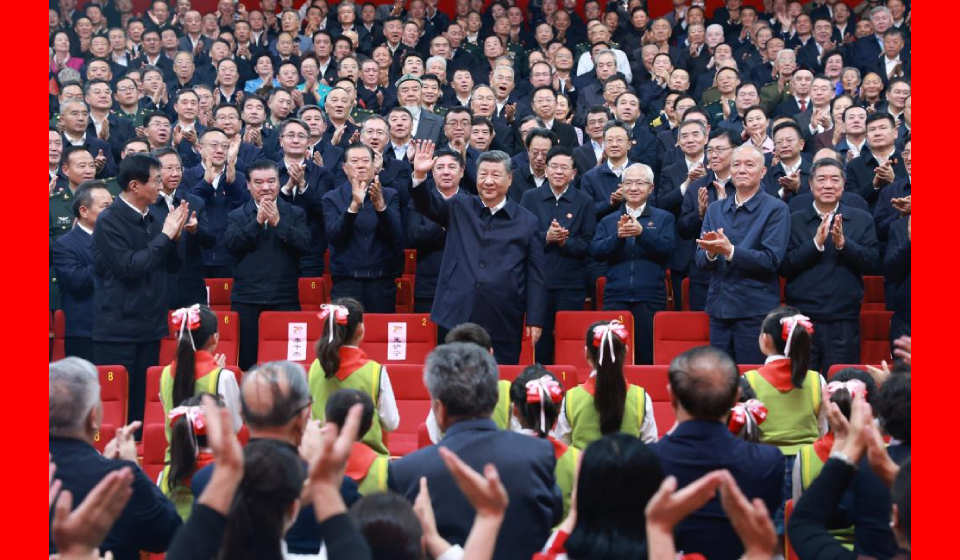 Chinese President Xi Jinping, also general secretary of the Communist Party of China Central Committee and chairman of the Central Military Commission, waves to people while attending a gala marking the 70th founding anniversary of Xinjiang Uygur Autonomous Region in Urumqi, the regional capital, on Sept. 24, 2025. Xi joined people of all ethnic groups in Xinjiang to watch the gala entitled "Beautiful Xinjiang." (Xinhua/Shen Hong)
