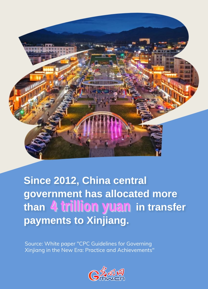 --The central government provides special support for Xinjiang in terms of funds, projects, preferential policies, industry support, and investments. Since 2012, it has allocated more than RMB4 trillion in transfer payments to Xinjiang, including nearly RMB543.48 billion in 2024 alone.