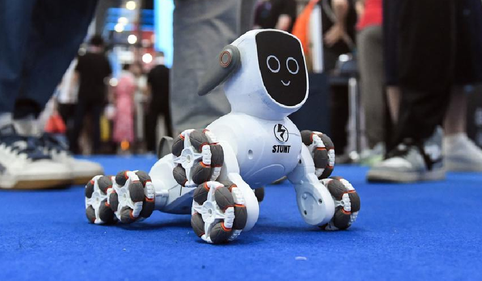 A robot demonstrates a skill to avoid obstacles at the Nanning International Convention and Exhibition Center in Nanning, capital of south China's Guangxi Zhuang Autonomous Region, Sept. 19, 2025. (Xinhua/Zhang Ailin)