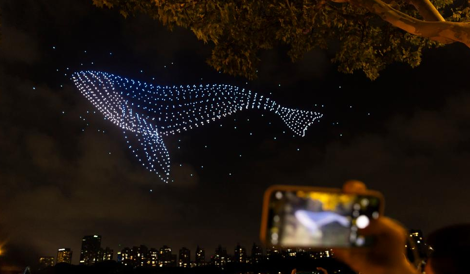 A drone light show is staged in celebration of the upcoming National Day in east China's Shanghai, Sept. 27, 2025. (Xinhua/Wang Xiang)