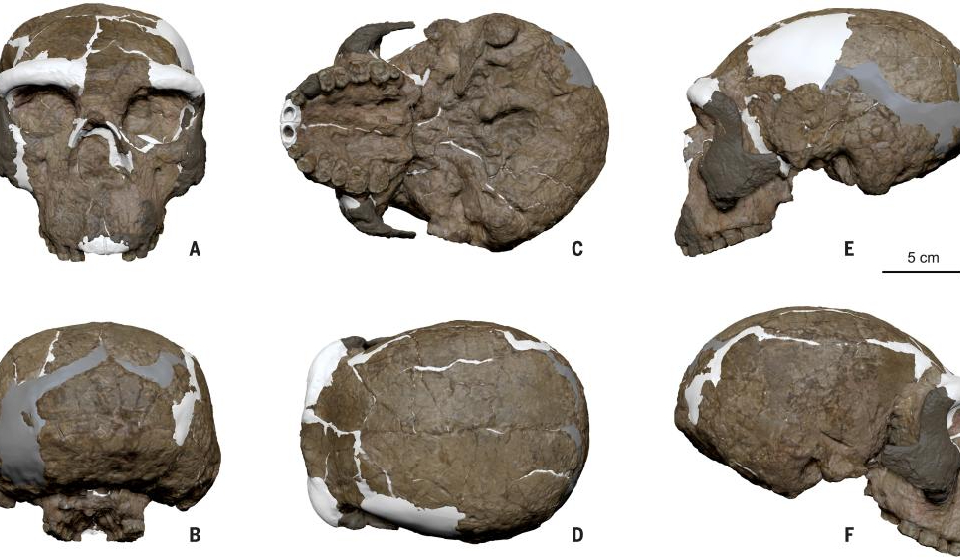 The rebuilt skull shows a mix of primitive and derived features. It has a low, flat forehead and a sticking-out face that looks like the older Homo erectus or Homo heidelbergensis, an early human species that lived in Africa and Europe about 700,000 to 200,000 years ago. However, it also has flatter cheekbones, a wider back of the skull and a larger brain size of over 1,100 cubic centimeters.