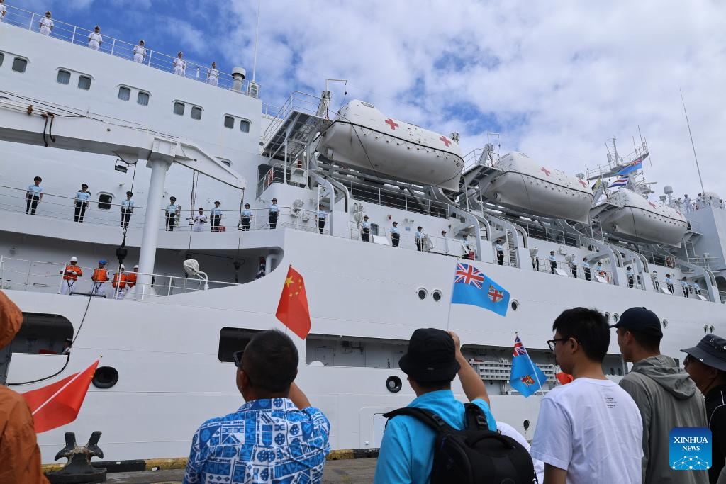 SUVA, Oct. 8 (Xinhua) -- The Chinese Navy hospital ship "Silk Road Ark," which is on "Mission Harmony-2025," successfully completed a seven-day friendly visit and humanitarian medical service to Fiji and set off for Tonga on Wednesday.