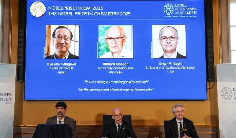 STOCKHOLM, Oct. 8 (Xinhua) -- Susumu Kitagawa, Richard Robson and Omar M. Yaghi were awarded the 2025 Nobel Prize in Chemistry on Wednesday for developing metal-organic frameworks (MOFs), the Royal Swedish Academy of Sciences announced.