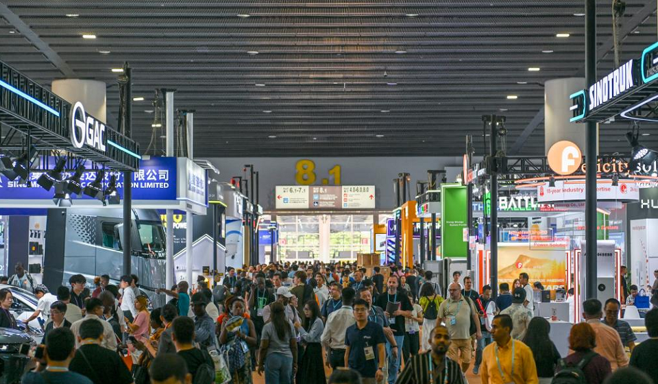 This photo taken on Oct. 19, 2025 shows people visiting the new energy vehicle and smart mobility exhibition area of the 138th edition of the China Import and Export Fair in Guangzhou, south China's Guangdong Province, Oct. 19, 2025. The first phase of the 138th edition of the China Import and Export Fair, also known as the Canton Fair, concluded on Sunday. According to statistics from China Foreign Trade Center, about 157,900 overseas buyers from 222 countries and regions attended the event offline. (Xinhua/Xiao Ennan)