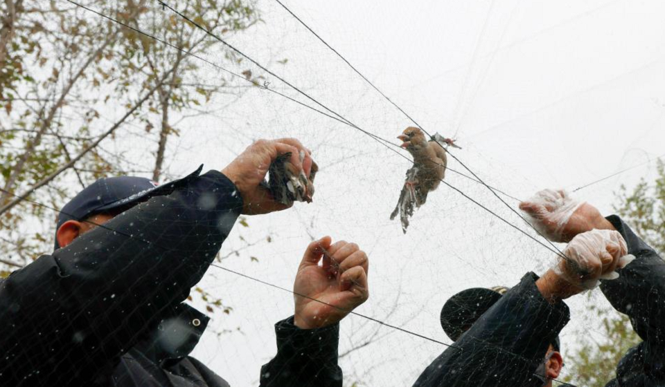 Volunteers rescue a bird trapped in illegal bird-capturing nets in Harbin, northeast China's Heilongjiang Province, Oct. 19, 2025. Composed of more than 60 members, a Harbin wildlife conservation volunteer team has long been dedicated to ecological protection in the Songhua River basin.