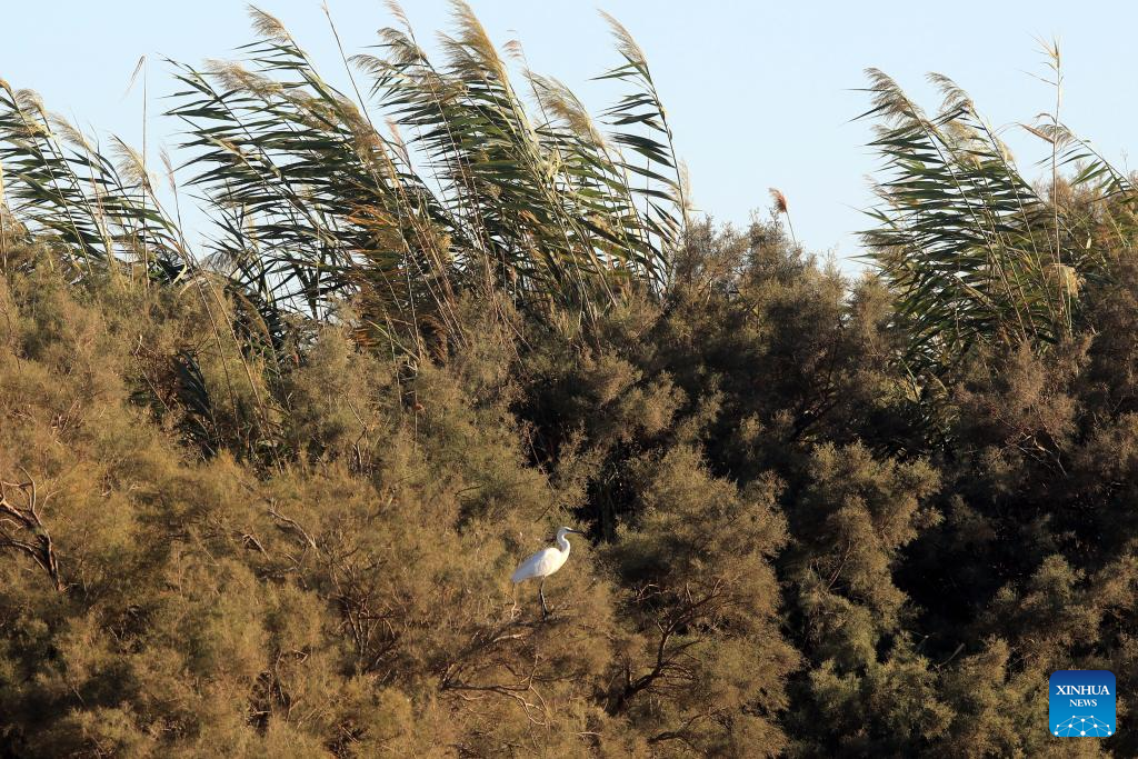 A bird rests in the Azraq Wetland Reserve in Azraq, Jordan on Oct. 13, 2025. Every year, millions of birds trace ancient aerial highways connecting Europe, Asia, and Africa. Jordan, located on one of these key bottlenecks, plays a crucial role in their twice-yearly migration. (Photo by Mohammad Abu Ghosh/Xinhua)