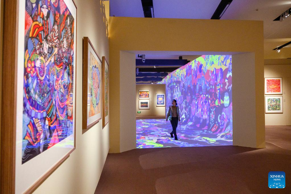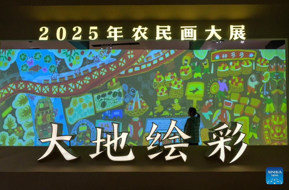 A man visits the "Colorful Brushstrokes upon the Earth: the 2025 Chinese Farmers' Paintings Exhibition" at the National Museum of China in Beijing, capital of China, Oct. 28, 2025. The exhibition opened here on Tuesday. (Xinhua/Jin Liangkuai)