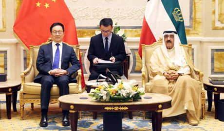 When meeting with the Kuwaiti emir, Han conveyed cordial greetings and best wishes from Chinese President Xi Jinping.