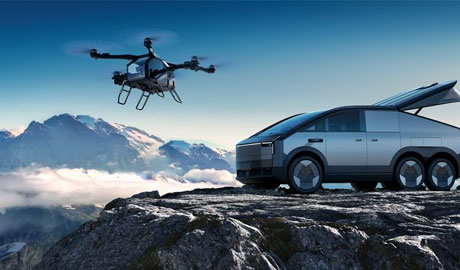 This rendering shows the modular flying car "Land Aircraft Carrier" by XPENG AEROHT, the flying car affiliate of electric vehicle maker XPENG. (XPENG AEROHT/Handout via Xinhua)
