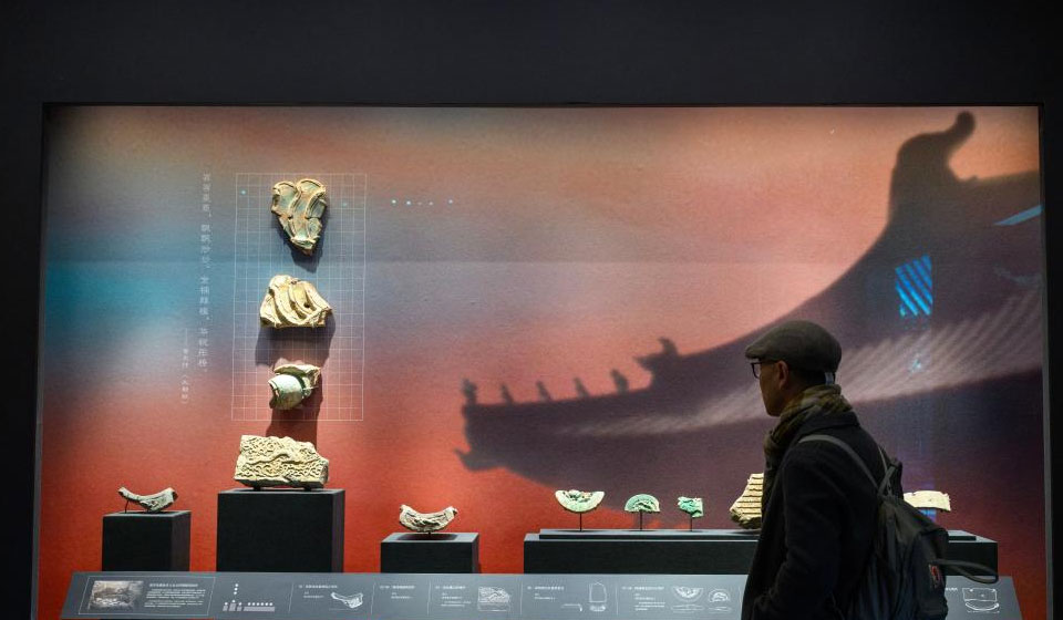 A reporter visits the exhibition "Beneath the Ninefold Walls: Archaeological Discoveries from the Imperial Workshops Site in the Forbidden City" at the Palace Museum in Beijing, capital of China, Nov. 3, 2025. The exhibition will open to public from Nov. 4, 2025 to Feb. 8, 2026 at the Palace Museum. (Xinhua/Jin Liangkuai)