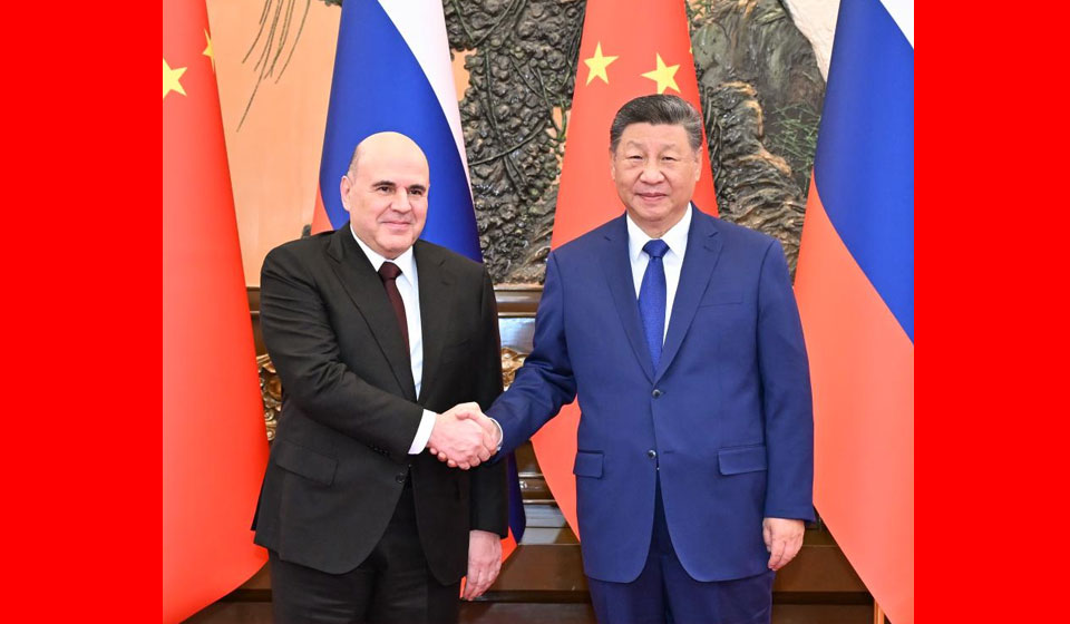 Chinese President Xi Jinping meets with Russian Prime Minister Mikhail Mishustin at the Great Hall of the People in Beijing, capital of China, Nov. 4, 2025. (Xinhua/Shen Hong)