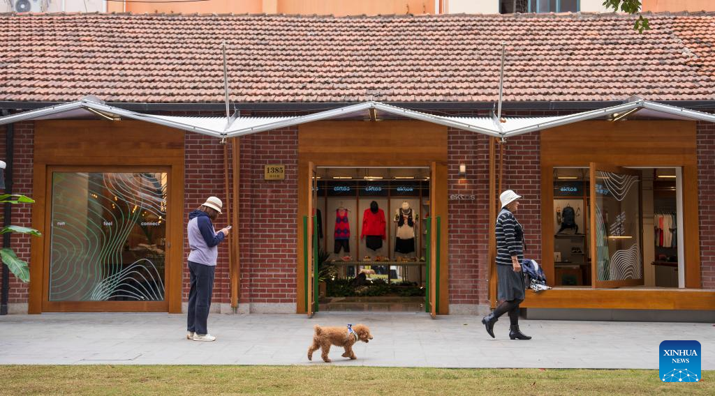 Pedestrians are pictured outside a store at the Yuyuan Road Historical and Cultural Block in east China's Shanghai, Nov. 12, 2025.