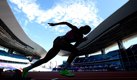 Mo Jiadie of Guangdong competes during the women's 400m heat of athletics at China's 15th National Games in Guangzhou, south China's Guangdong Province, Nov. 17, 2025. (Xinhua/Xiao Yijiu)