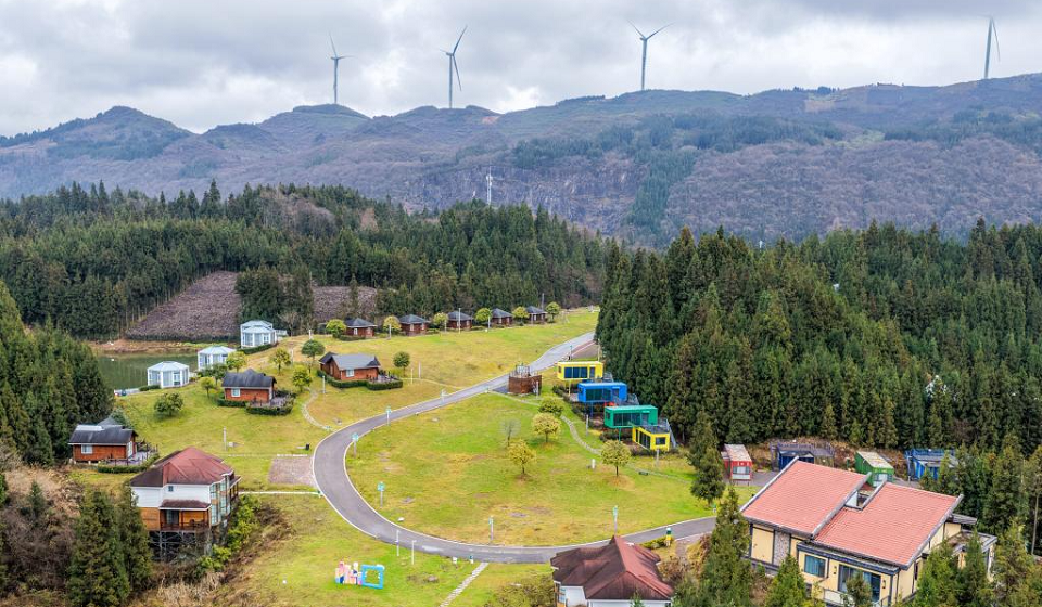 An aerial drone photo taken on Nov. 20, 2025 shows residents attending a group banquet in celebration of the Qiang New Year in Wenchuan County, Aba Tibetan and Qiang Autonomous Prefecture, southwest China's Sichuan Province. An event celebrating the Qiang New Year was held here from Wednesday to Thursday, featuring a series of activities. (Photo by Li Xiangyu/Xinhua)