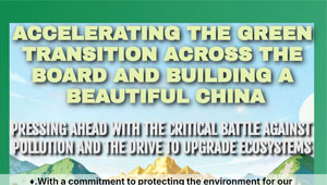 The Recommendations of the Central Committee of the Communist Party of China (CPC) for Formulating the 15th Five-Year Plan for National Economic and Social Development was adopted at the fourth plenary session of the 20th CPC Central Committee on Oct. 23. These posters show highlights of the 12th part of the recommendations on accelerating the green transition across the board and building a beautiful China.