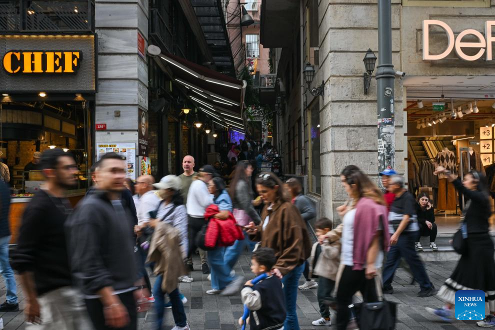 Customers enjoy coffee in the alley outside the Turkish cafe Mandabatmaz in Istanbul, Trkiye, Nov. 22, 2025.(Xinhua/Liu Lei)