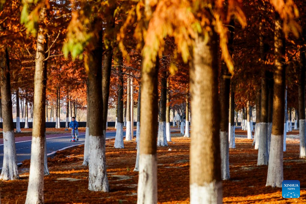 Tourists visit a park in Jiaxing, east China's Zhejiang Province, Dec. 15, 2025. (Photo by Jin Peng/Xinhua)