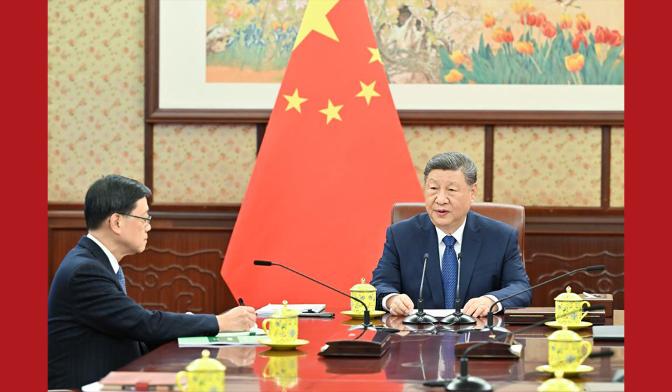 President Xi Jinping meets with Chief Executive of the Hong Kong Special Administrative Region (HKSAR) John Lee, who is on a duty visit to Beijing, capital of China, Dec. 16, 2025. (Xinhua/Yan Yan)