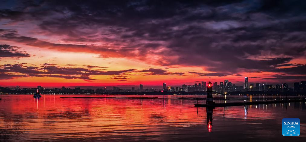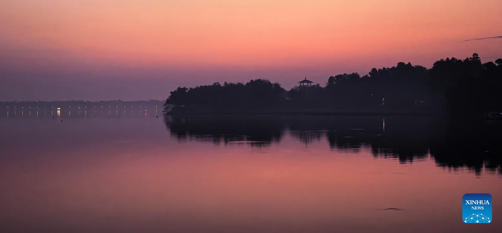 This photo taken on Nov. 16, 2025 shows the scenery at dawn in Donghu Lake scenic area in Wuhan, central China's Hubei Province. (Xinhua/Shen Hongbing)