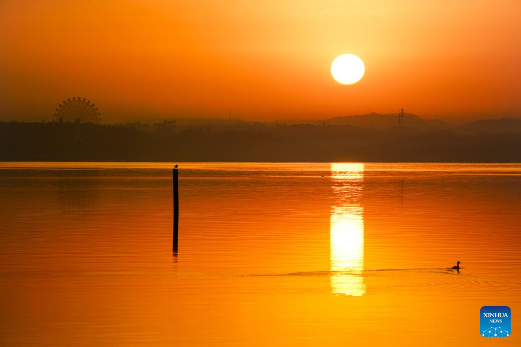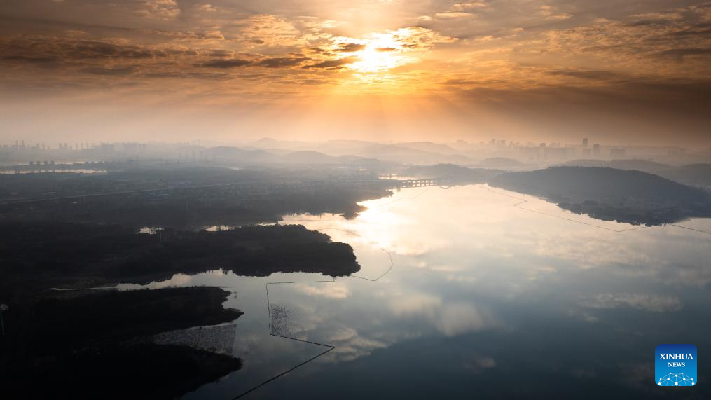 This photo taken on Nov. 22, 2025 shows the scenery at sunset in Donghu Lake scenic area in Wuhan, central China's Hubei Province. (Xinhua/Shen Hongbing)