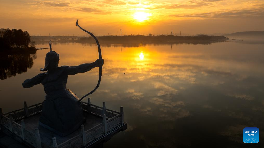 This photo taken on Dec. 14, 2025 shows the scenery at sunrise in the Donghu Lake scenic area in Wuhan, central China's Hubei Province. (Xinhua/Shen Hongbing)