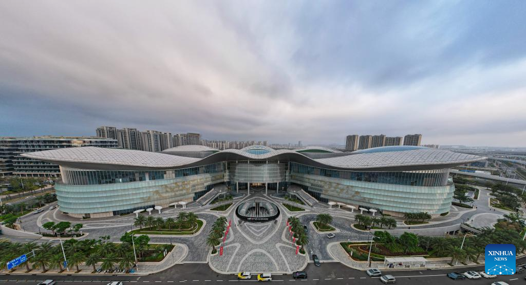 A drone photo taken on Dec. 18, 2025 shows the front entrance to Xinhai Harbour in Haikou, south China's Hainan Province. China on Thursday launched island-wide special customs operations in the Hainan Free Trade Port (FTP). (Xinhua/Yang Guanyu)