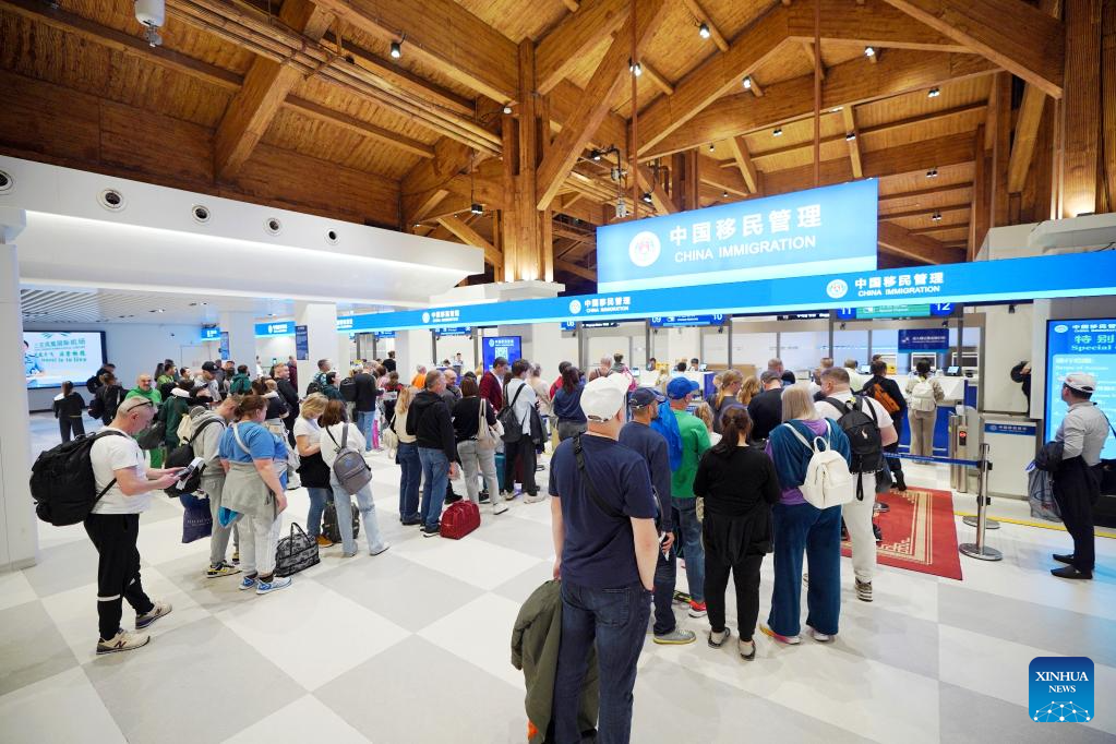 An immigration officer processes border procedures for inbound passengers at Sanya Phoenix International Airport in Sanya, south China's Hainan Province, Dec. 18, 2025. China on Thursday launched island-wide special customs operations in the Hainan Free Trade Port (FTP). (Photo by Meng Xushun/Xinhua)