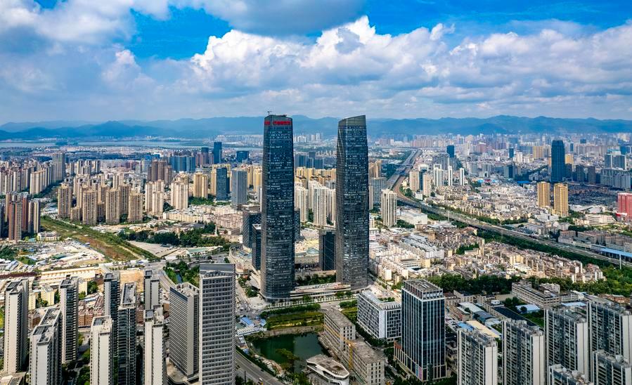 An aerial drone photo taken on Sept. 4, 2025 shows a city view in Kunming, southwest China's Yunnan Province.(Xinhua/Chen Xinbo)