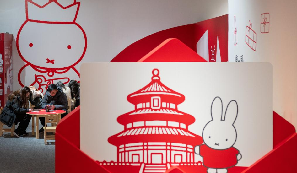 People visit the exhibition "Miffy and Friends China Experience" at the Times Art Museum in Beijing, capital of China, Dec. 24, 2025. Miffy is a world-famous cartoon rabbit created by Dutch artist Dick Bruna. The exhibition opened here on Wednesday and will last until March 22, 2026. (Xinhua/Hu Jingwen)