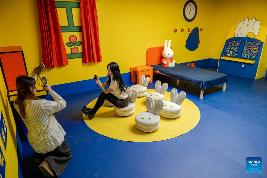 People take photos while visiting the exhibition "Miffy and Friends China Experience" at the Times Art Museum in Beijing, capital of China, Dec. 24, 2025. Miffy is a world-famous cartoon rabbit created by Dutch artist Dick Bruna. The exhibition opened here on Wednesday and will last until March 22, 2026. (Xinhua/Hu Jingwen)