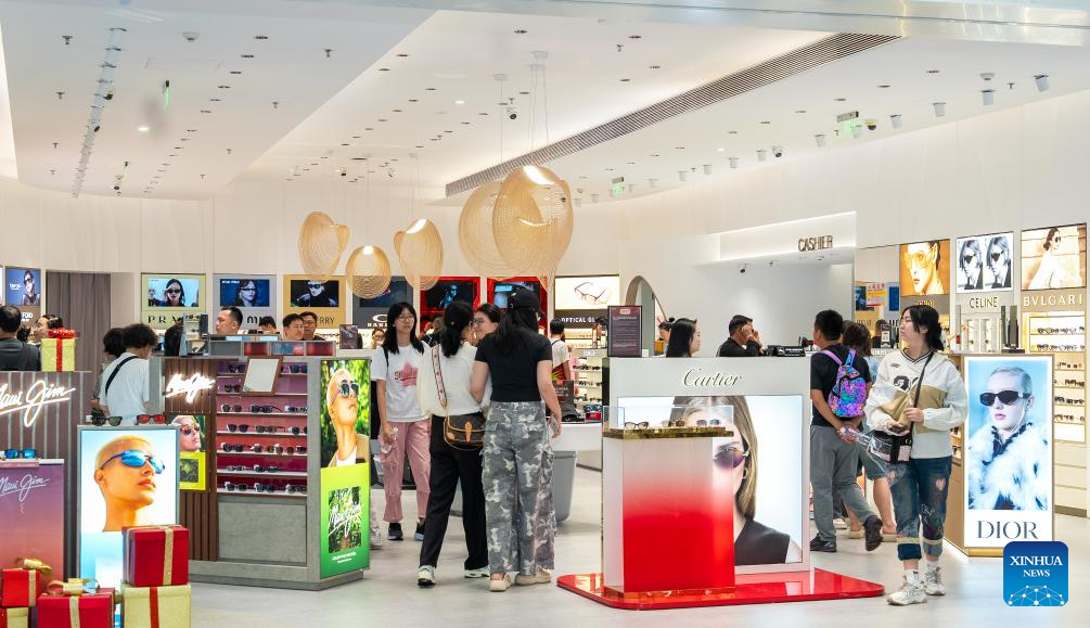 People shop at a duty-free shopping mall in Sanya, south China's Hainan Province, Dec. 25, 2025. The offshore duty-free sales in Hainan Free Trade Port (FTP) totaled 1.1 billion yuan (about 156.9 million U.S. dollars) during the first week of island-wide special customs operations, a year-on-year increase of 54.9 percent, according to Haikou Customs. (Xinhua)
