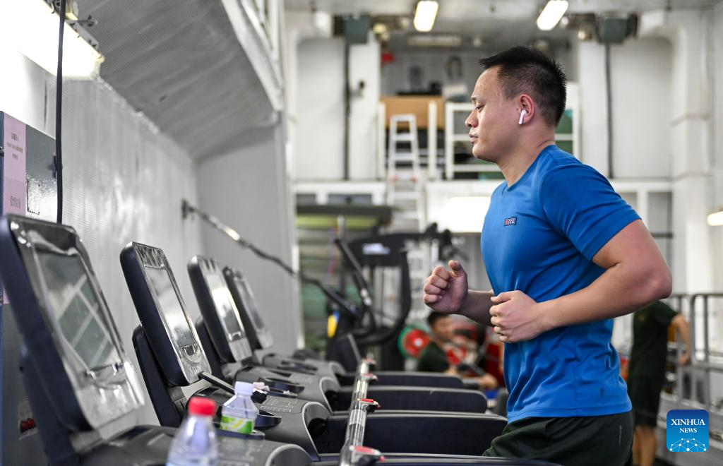 A law enforcer exercises on the China Coast Guard (CCG) vessel Huangyan during a patrol mission in the territorial waters of China's Huangyan Dao, Nov. 9, 2025.