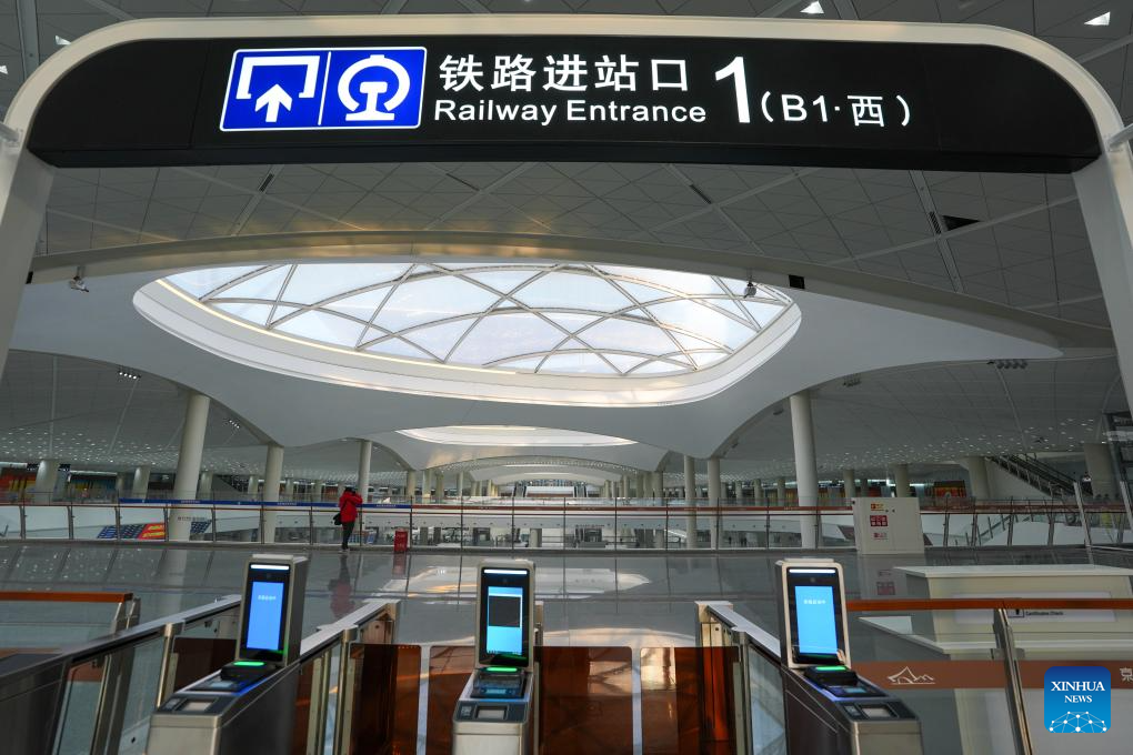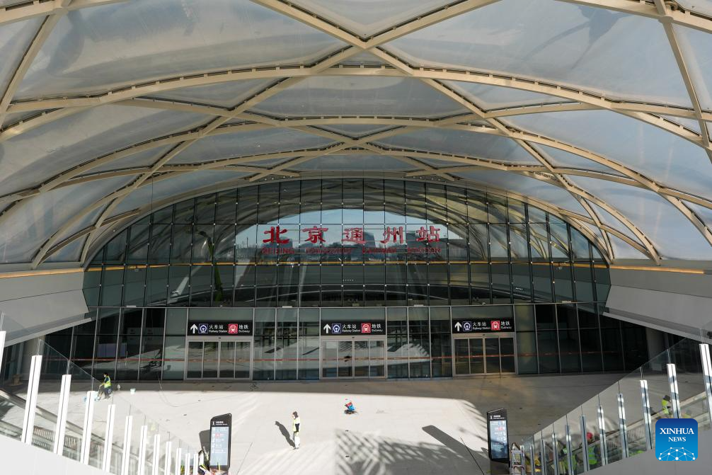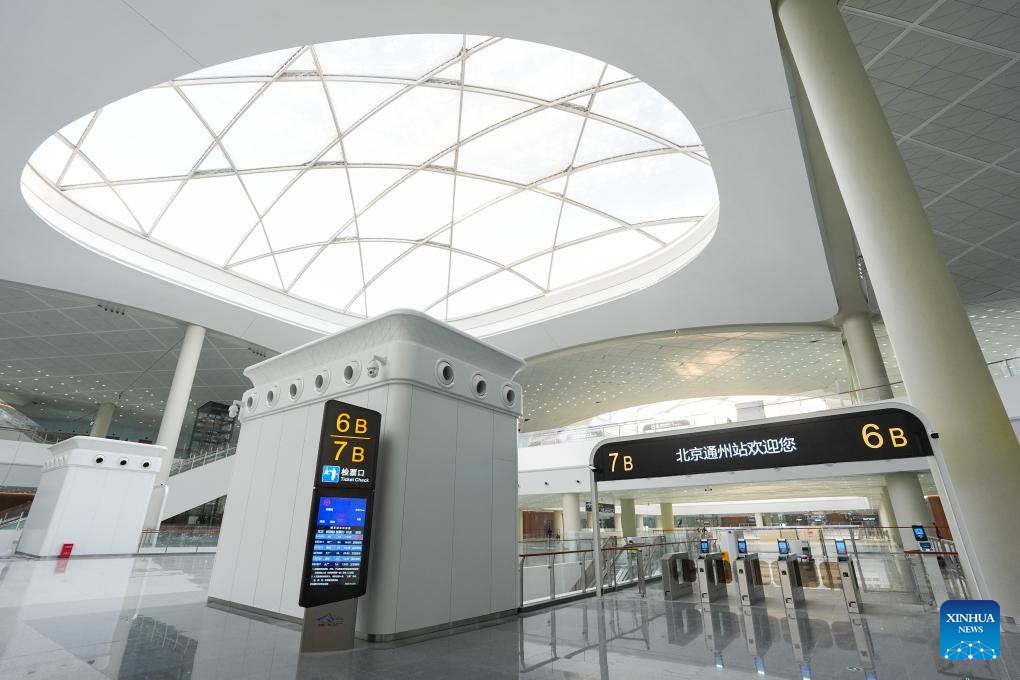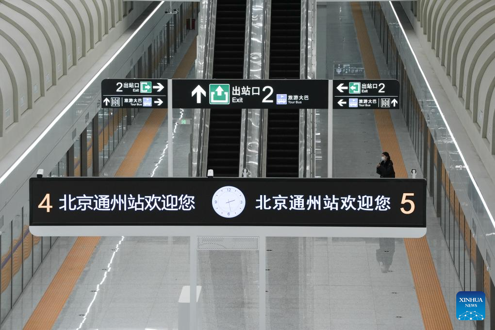 This photo taken on Dec. 25, 2025 shows an entrance of the Beijing Tongzhou Railway Station in Beijing, capital of China. The railway station, located in the comprehensive transportation hub of Beijing's sub-center Tongzhou District, will be officially put into operation on Dec. 30. (Xinhua/Ju Huanzong)